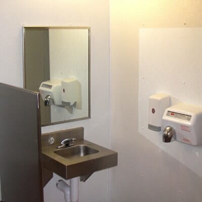 New Mexico’s Department of Transportation has a historical relationship with Romtec and together they have tackled numerous one-of-a-kind projects. So, it was no surprise when the New Mexico DOT approached Romtec about designing a comfort station structure that would match up to an existing adobe building at one of their rest stops. New Mexico’s rest areas are often more than just stops along the highway. They are often historical locations, or special sites that offer the traveler much more than respite from the road and restroom facilities. This particular structure was an adobe style building with a single slope roof and covered entry. Despite the exterior design, it was still a rest area though, so they required the most durable fixtures, partitions, and materials, to stand up to the 24-hour wear and tear that rest stops offer.