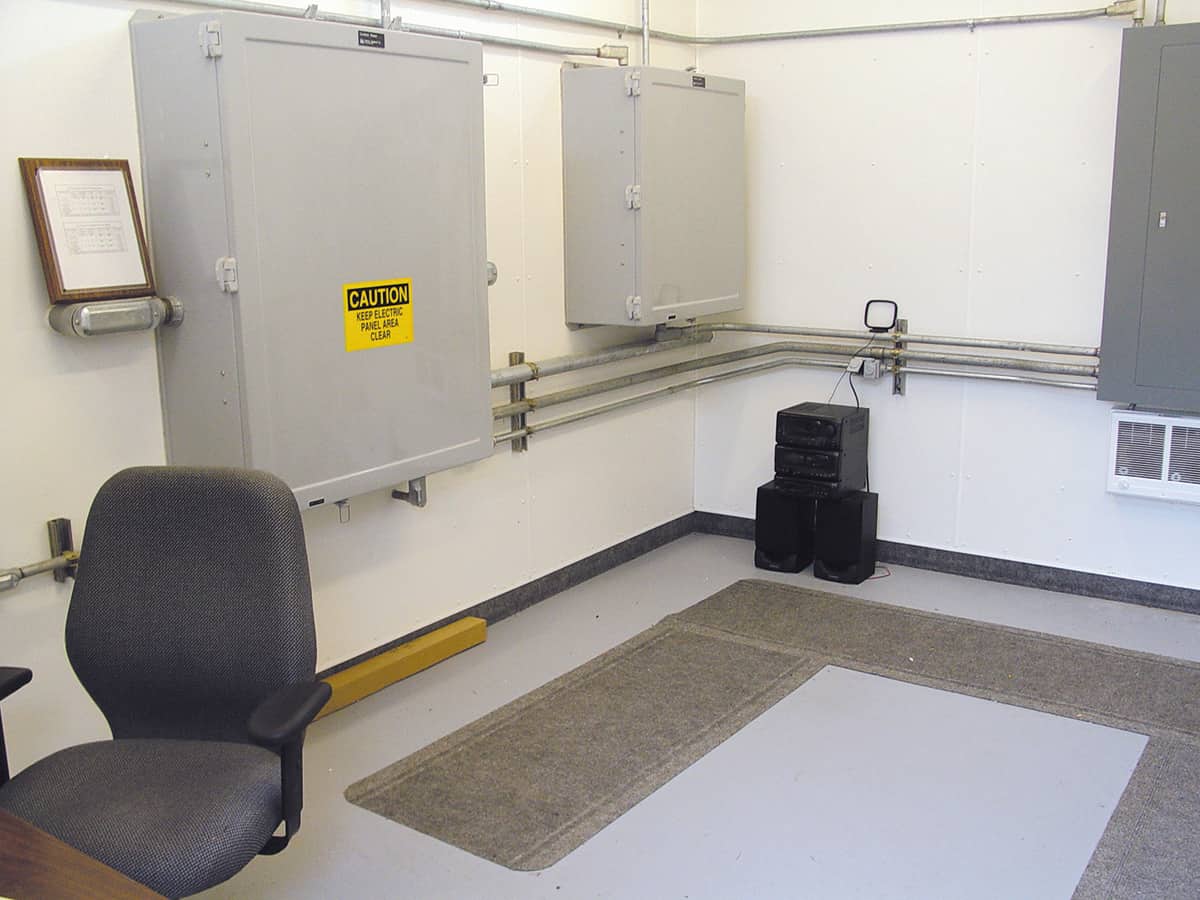 Romtec designed a 12’ 8” x 16’ 8” utility building that could accommodate all the necessary equipment, control panels, and electrical connections. Using their dry-stack, split-face block, filled with concrete gives the city 8” solid walls, cutting down on the passage of sound to the outside. Romtec provided a single-man door and commercial shatter-proof lighting. Custom ventilation systems provide adequate air flow to ensure that gases or fumes are adequately forced out of the building and fresh air is pumped in. The proposed ventilation system completely replaces all the interior air six times every hour. A heavy duty steel ridge beam can be used as a hoist for heavy equipment. Romtec provided the town with an attractive split-face block building that meets all the needs of the wastewater treatment plant It is super secure both inside and out with heavy duty fixtures, and materials to stand up to high demands.