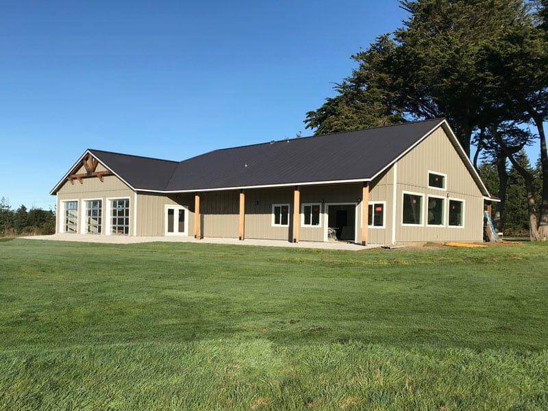 Romtec designed, supplied, and constructed the new clubhouse building at Bandon Crossings Golf Course in Bandon, Oregon. This was a unique project for Romtec due to the significant size of the building and required a “stick-built” construction style. The clubhouse was commissioned by Bandon Crossings to celebrate their 10th anniversary since opening in 2007 and was designed to meet the vision of the owners. The multi-purpose building fulfills several functions for the golf course, including a retail area for the pro shop and a large room to host events. The golf course is known for hosing community golf events and tournaments, and the new clubhouse will make it an ideal venue for hosting weddings and other private events. Additionally, the unique landscape of Bandon Crossings allows it to remain open year-round, and the building was designed for use in all seasons. The events room includes roll up doors with windows that can be opened during pleasant weather for indoor/outdoor hosting. Bandon Crossings has done a great job cultivating a beautiful and affordable golf course and the new clubhouse building is a great addition to the already impressive facility.