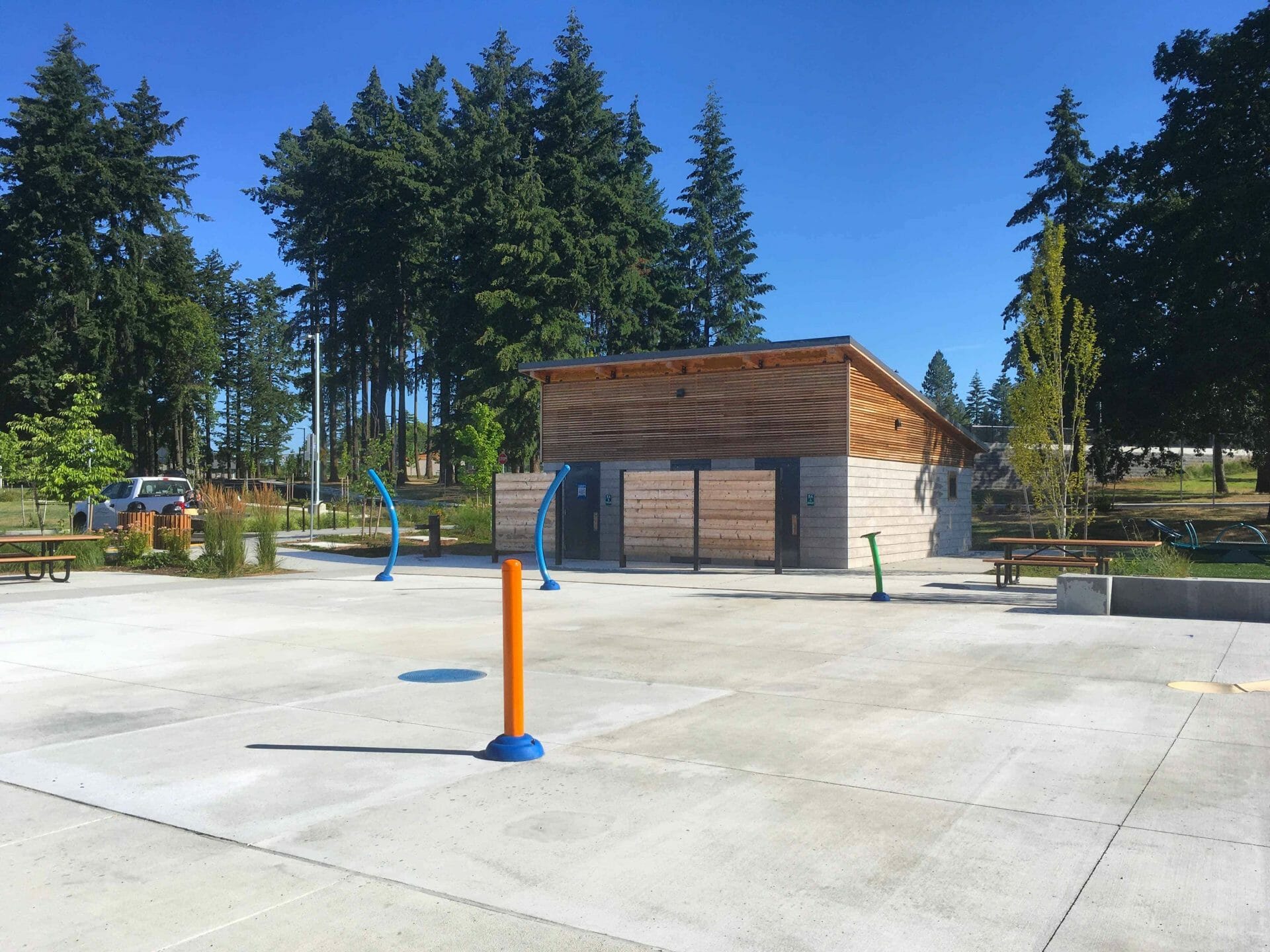 At Cedar Hills Park, Romtec supplied and installed a custom restroom/concession building and a custom restroom/storage building to service the park. The redevelopment of the park brought many new features, including athletic fields, a splashpad, and a community garden, creating the need for facilities onsite to service the visitors and house piping, chemicals, and more.