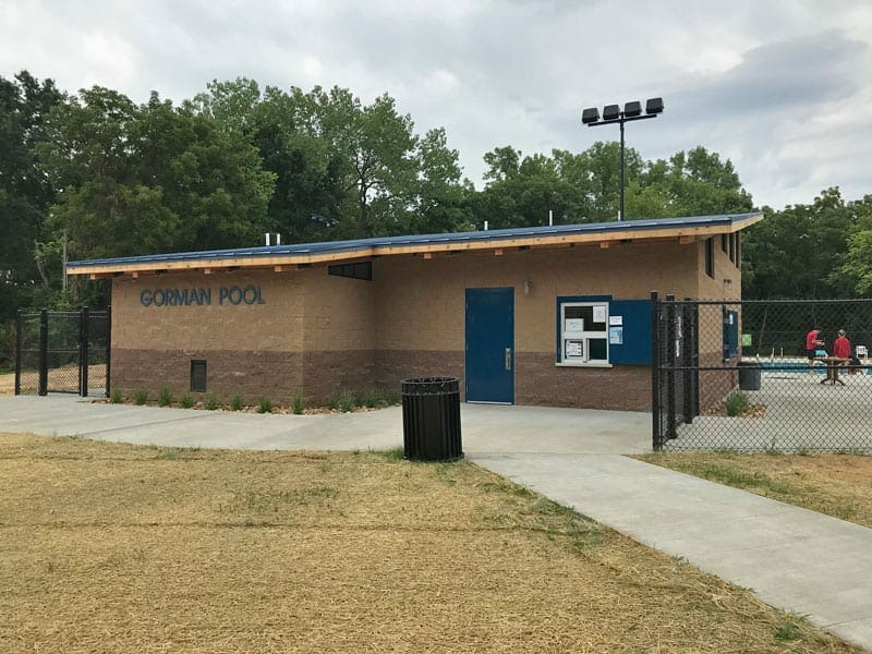 Romtec designed and supplied two new buildings, a poolhouse and a storage building, for Gorman Pool in Kansas City, Missouri. Gorman Pool is a public pool that is managed by the City. Prior to being owned by the City, Gorman Pool was owned by YMCA but had been shut down. The two Romtec buildings were installed alongside several other renovations to prepare the pool for its re-opening which took place on the 4th of July in 2018. Meeting the needs of the public in this application required several building features that are common in community pool settings. The largest building actually serves several purposes with a ticket/concession window at the entrance of the pool, a lifeguard room with access to staff areas, nine exterior showers, large men’s and women’s bathrooms, and two family changing rooms. The smaller utility building has a matching exterior and is used to store chemical supplies onsite for the pool and other maintenance. The new Gorman Pool is the perfect place to beat the summer heat in Kansas City!