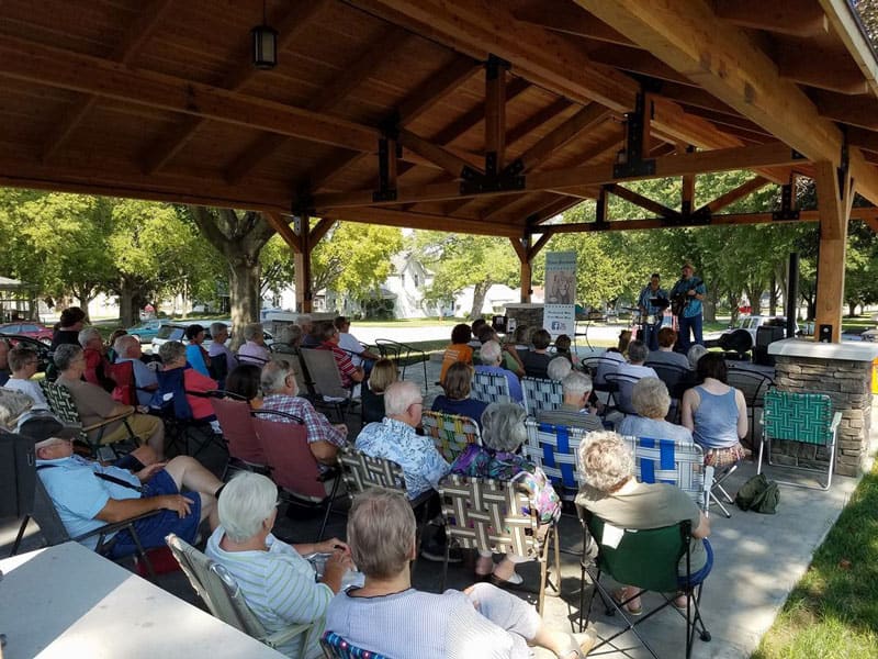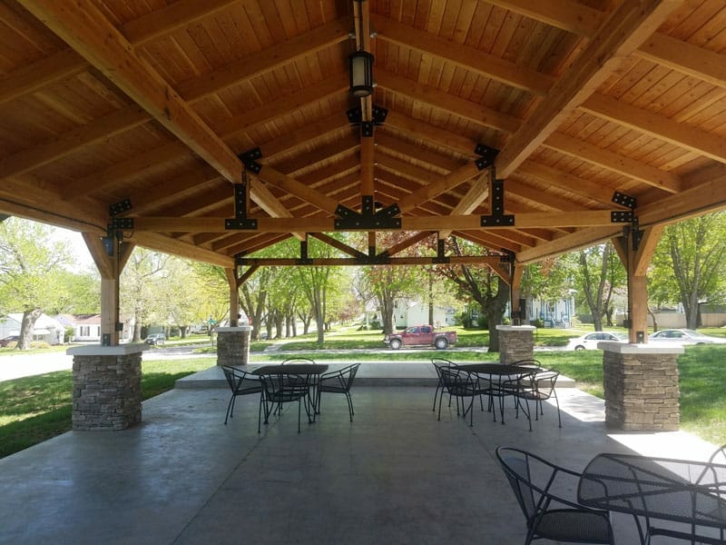 Romtec designed and supplied a pavilion for Lied Public Library in Clarinda, Iowa. Lied Public Library uses the pavilion to host outdoor events like art classes and even as a concert venue. When the pavilion is available, community members rest under the shelter after using the City’s walking trail and can even charge their phones and other devices with the pavilion’s electrical outlets. This pavilion reflects architectural elements in the library to create a cohesive theme between these structures. Lied Public Library now has a great outdoor space where they can host events while community members can utilize the shelter for weather protection year round!
