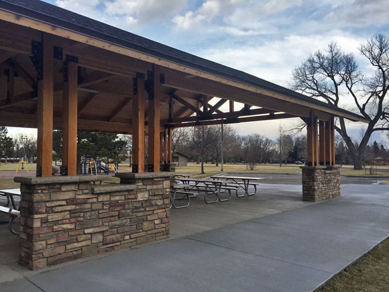 Romtec designed and supplied a large pavilion at Lions Park for the City of Cheyenne in Wyoming. The design of the new pavilion was inspired from a previous project found on the Romtec website. This one was customized with a new color scheme to better fit the look in the area. Lions Park is a massive recreational area that surrounds Sloans Lake. The perimeter of the lake features a scenic walking trail and is a favorite exercise route for regulars. Visitors are allowed to fish in the lake and can even rent boats and canoes. Several shelters are also available for rental throughout the park for birthday parties, barbeques, and other community events. The new Romtec pavilion is one of the rental shelters and includes a 35’ x 75’ sheltered area with tables and grills for parkgoers to use.