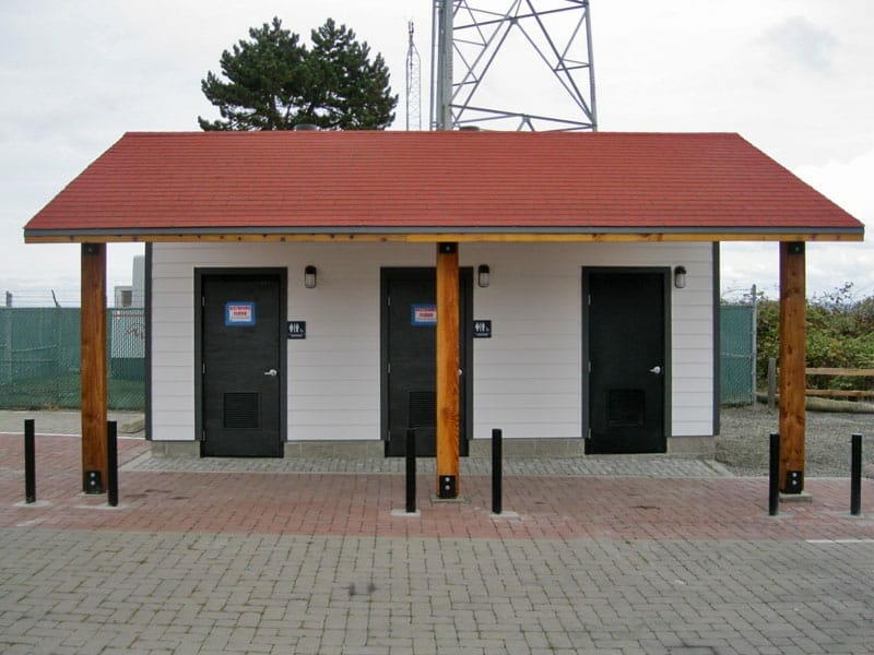 Romtec provided the design and supply of a waterless restroom for the Point No Point County Park in Hansville, Washington. Charles Wilkes named this muddy shoal after a similar landmark located on the Hudson River in New York. The park is home to the oldest lighthouse on the Puget Sound that opened in 1879. The lighthouse was manned until 2006 when a modern rotating beacon replaced the need for a manned station. Today, visitors to the park can stay overnight in the lighthouse keeper’s duplex that is adjacent to the lighthouse. The Romtec vault restroom design matches the lighthouse and residence buildings, offering white lap siding and red shingle roofing. The specific style of roofing had been discontinued, but Romtec sought out and found a supplier with enough material to complete this building. These matching buildings establish and maintain a common theme throughout the park and keep visitors focused on the main buildings. Additionally, since becoming a member in 2009, the lighthouse is now the headquarters of the United States Lighthouse Society.
