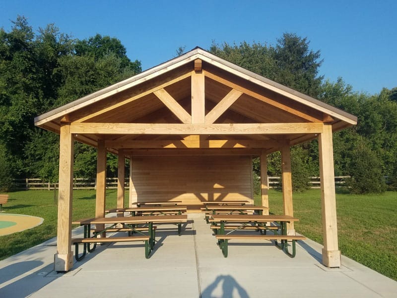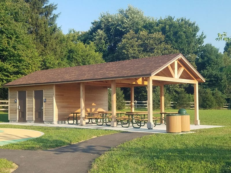 Romtec designed and supplied this restroom for the new Unionville Community Park in East Marlborough, Pennsylvania. The 20-acre Lion’s budget was funded through several grants and contributions from local and state government, as well as several local businesses. Some cool features of the park are paved walkways around the park’s wetlands, a ballfield, children’s play area, and a dog park. Romtec value-engineered this restroom to help stay in the city’s budget. Notched joints were used rather than metal brackets on a large covered picnic area, this reduced costs and added a simple appearance. Additionally, including a covered picnic area on the restroom combined the comfort of a pavilion with substantial cost savings by purchasing a single, multi-purpose structure. The new Unionville Park is a great place for the community to gather and take in the beautiful landscape of their area.