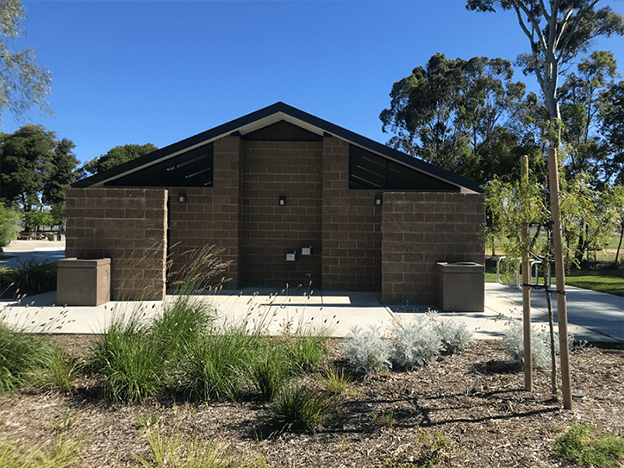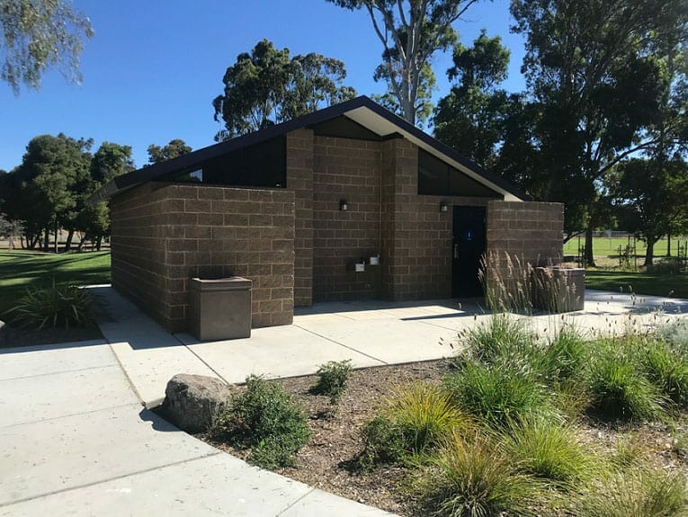 Romtec designed and supplied several buildings at Waterfront Park in the City of Martinez, California. This is one of the city’s most prominent parks and sits along the bay offering views of green space in this densely packed urban area. The park has been the focus of a large improvement project in an effort to upgrade existing amenities and install new facilities to support visitors. Athletic fields in the park received renovations including new irrigation systems, field grading, lighting, and walkways to support league play and recreational games. Romtec was tasked with providing the design and supply of two public restroom buildings with several years between them as the project continued. The smaller of the two buildings was installed first and includes two single user restrooms designed for ADA accessibility. The second building is much larger and includes two multiuser restrooms with a total of eight toilets. Exterior wall surfaces are treated with a sacrificial anti-graffiti coating to protect against vandalism. The City of Martinez has devoted significant amounts of time and energy into the Waterfront Park to provide the community with access to a high-quality park that meets their needs.