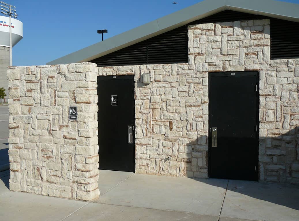 Romtec jumped at the opportunity to design a custom building to match the existing structure. They designed a multi-user restroom facility with a small concession room, including a heavy duty roll-up window and stainless steel counter top. Romtec called out a stone to match the existing, older building as closely as possible, and the match came out amazing. Romtec provided a hot-water heater and hand wash sink for the concession area. Romtec used commercial grade fixtures that are also family friendly. The end results were beyond expectations. The buildings flow together seamlessly, as if they were built at the same time. This is a very unique building for Romtec that fulfilled all the requests of their customer, and makes the park and sporting events more enjoyable for everyone.